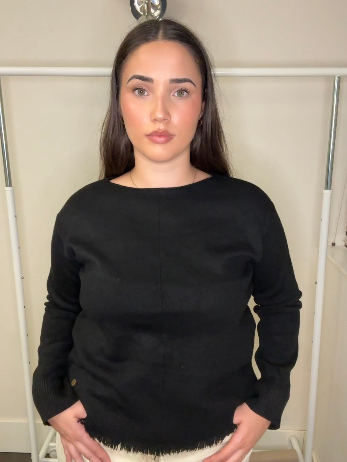 🌾 Jersey de Punto con Escote Barco y Bajo Desflecado