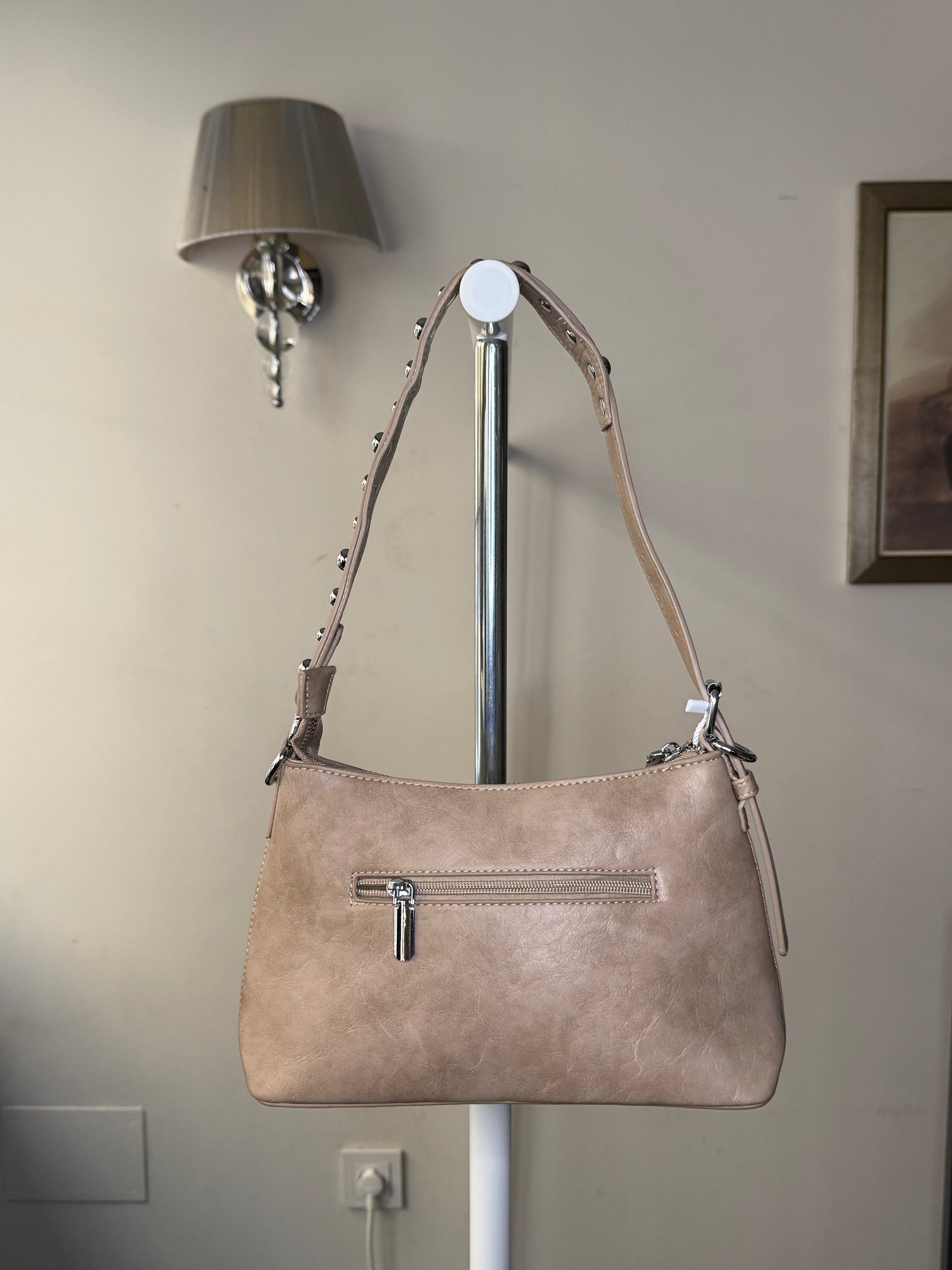 Este bolso de hombro presenta la forma compacta y curva característica del estilo Baguette, actualizado con un diseño que equilibra el minimalismo y la rebeldía.